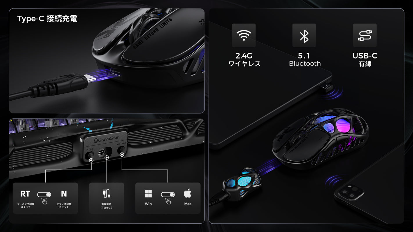 キーボード接続:有線マウス接続:トライモード (有線/Bluetooth/2.4GHz ワイヤレス)