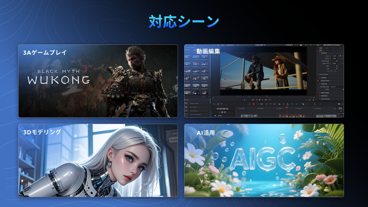 - 出力インターフェース:DP ×3 + HDMI ×1(DP2.1a、HDMI2.1b)