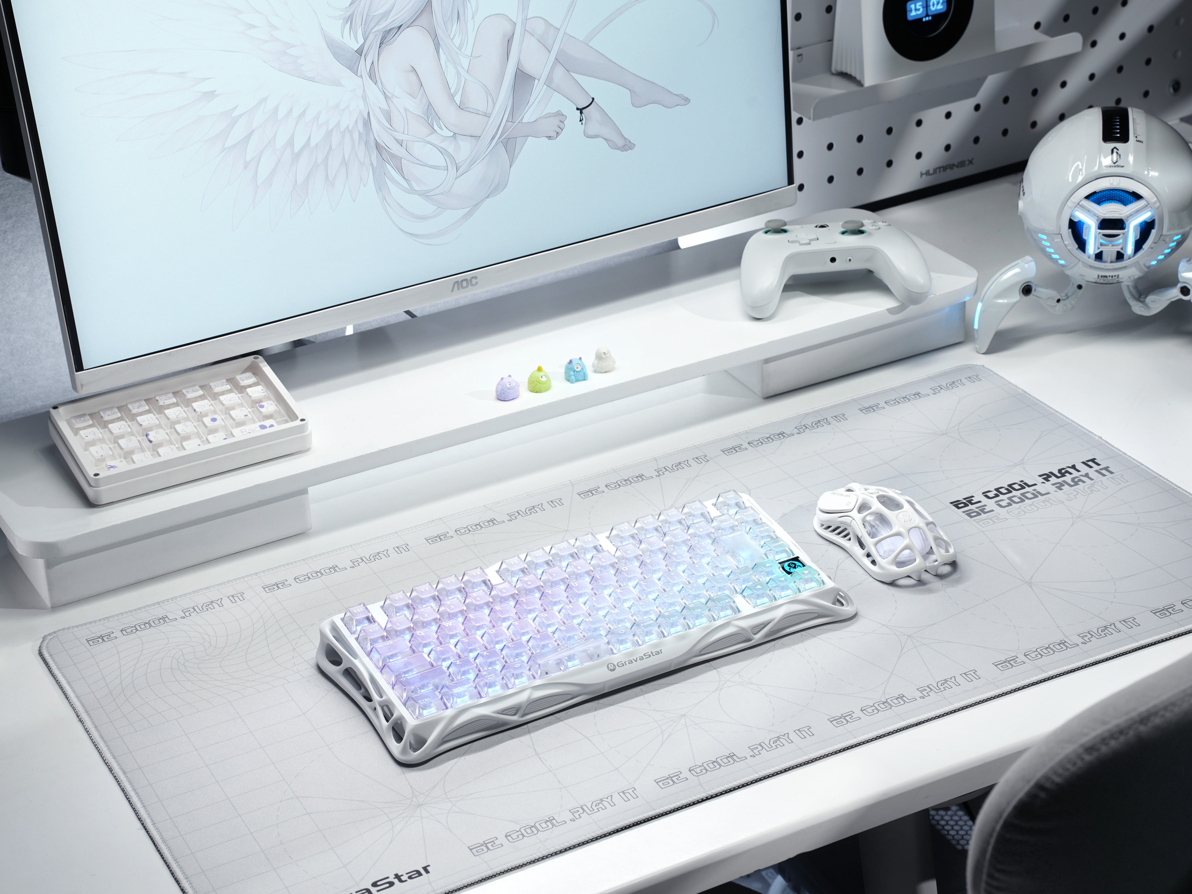 シルキーで滑らかなカスタム スイッチ:楽なタイピングのために設計された独自の GravaStar x BSUN リニア スイッチ - 超軽量 40gf の作動力、正確な 2mm のプリトラベル、3.6mm のトータル トラベルで応答性と快適さの完璧なバランスを実現。