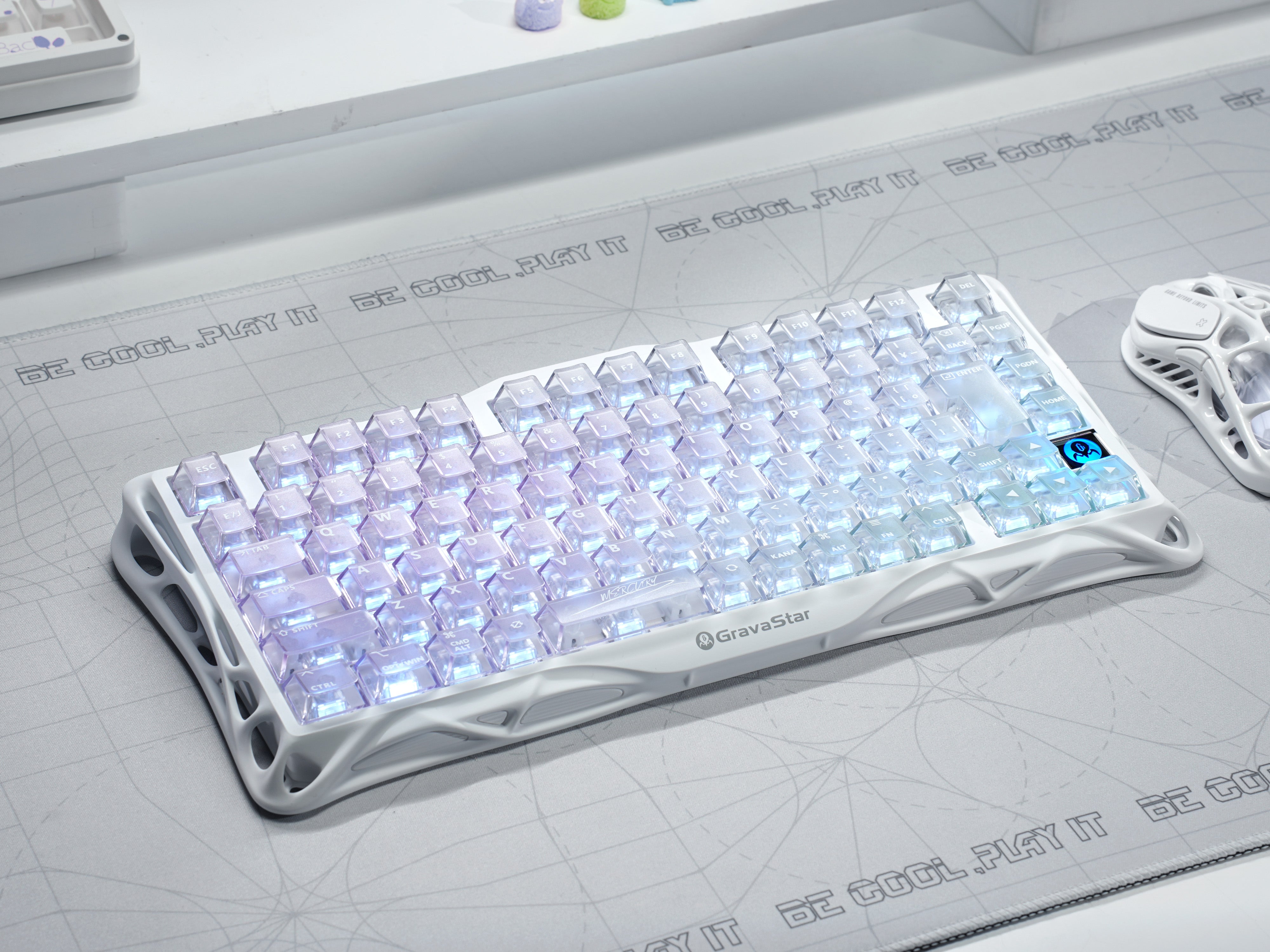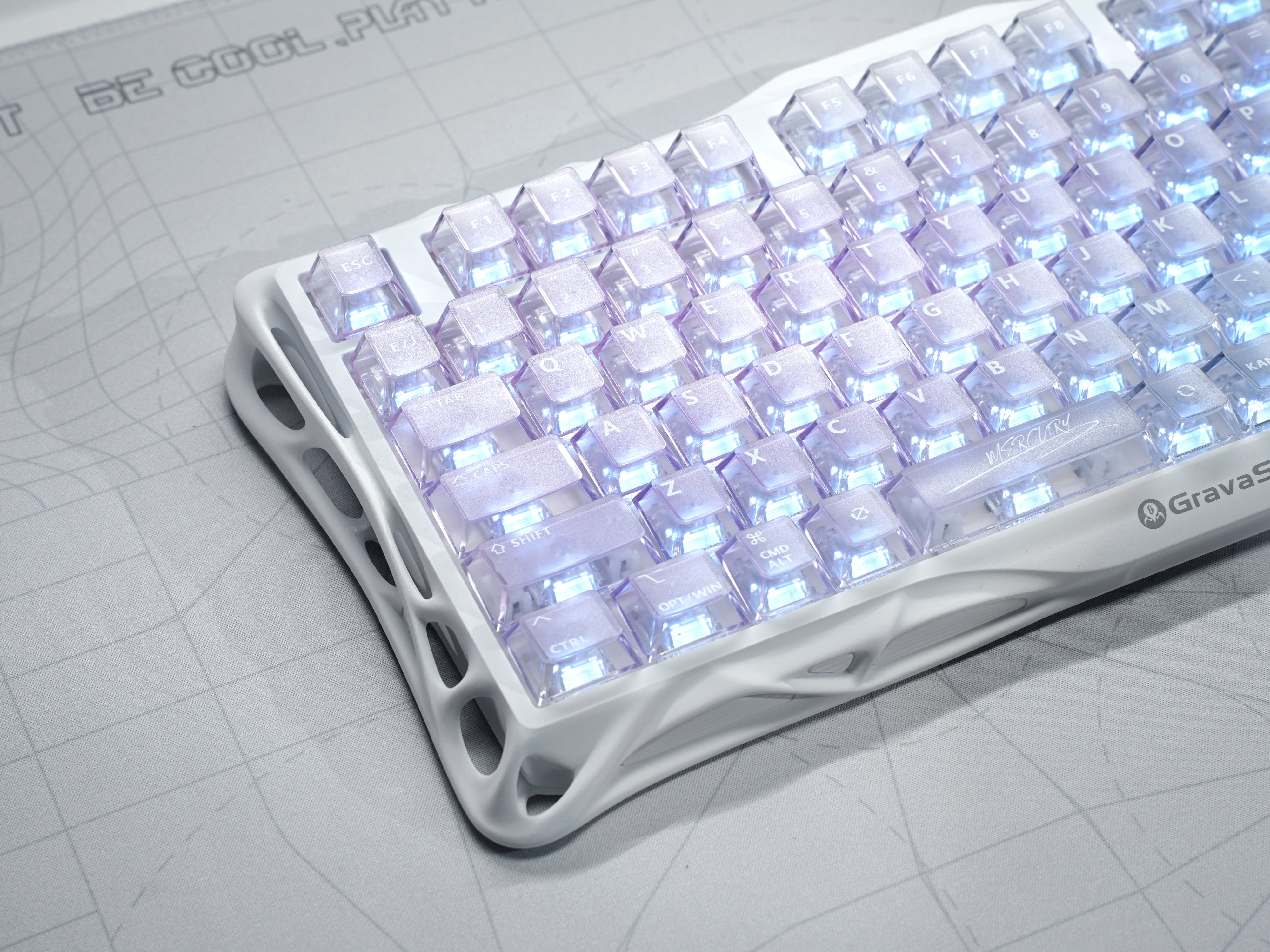 クリスタルクリアなキーキャップ:ゴージャスな透明な PC キーキャップは、モダンで洗練された外観を作り出し、その下の RGB ライティングを美しく見せます。