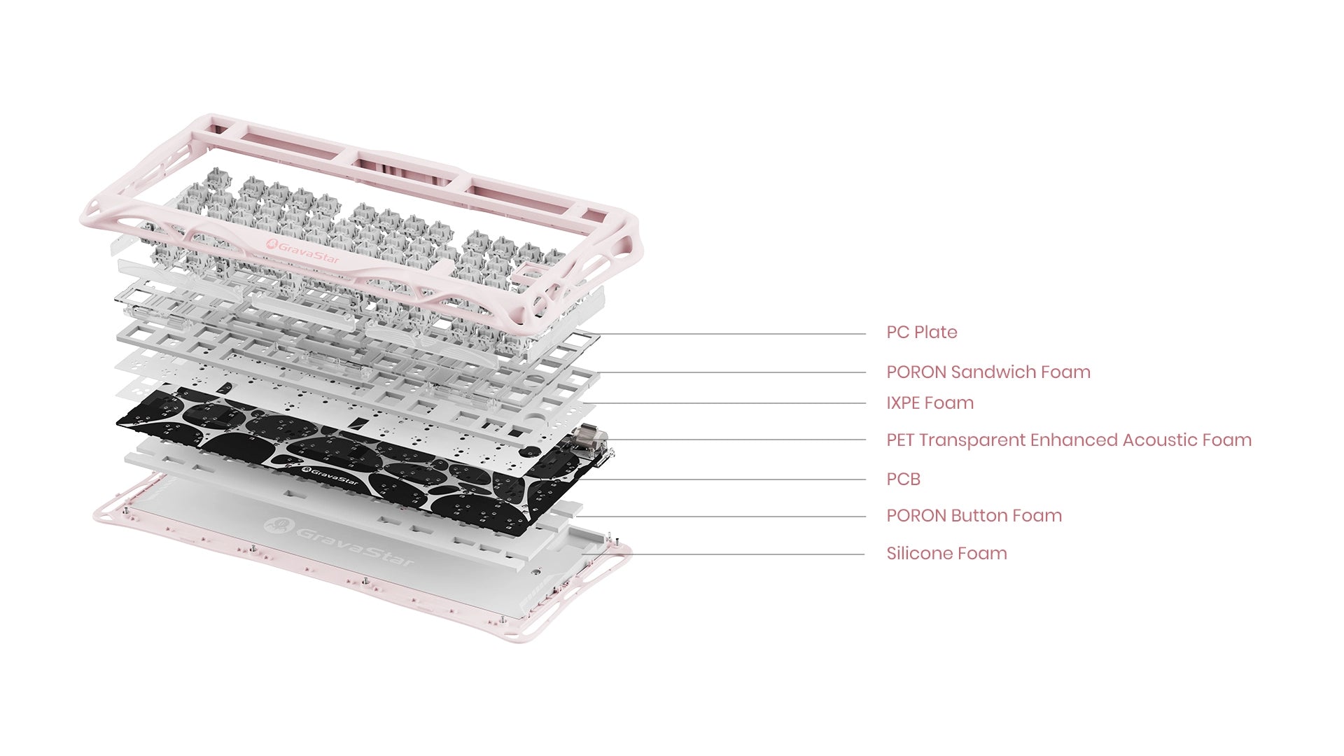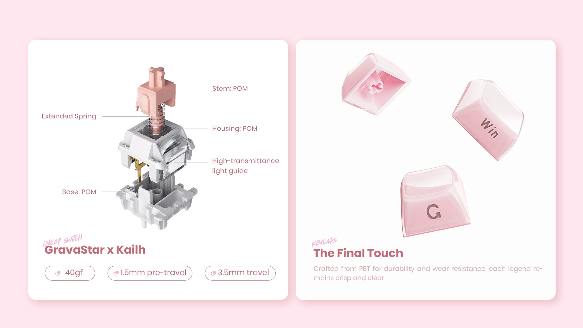 - カスタムスイッチ: GravaStar × Kailh Cherry Pink リニアスイッチ搭載