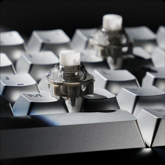 GravaStar UFOマグネティックスイッチは、ホール効果技術とN52Hマグネットを採用し、超高精度(0.001mm)のアクチュエーションを実現します。摩擦のない設計により、1億回以上のクリック耐久性と安定性を確保し、独自のUFO形状がRGBライティングを際立たせます。あらゆるゲーミングジャンルに最適です。