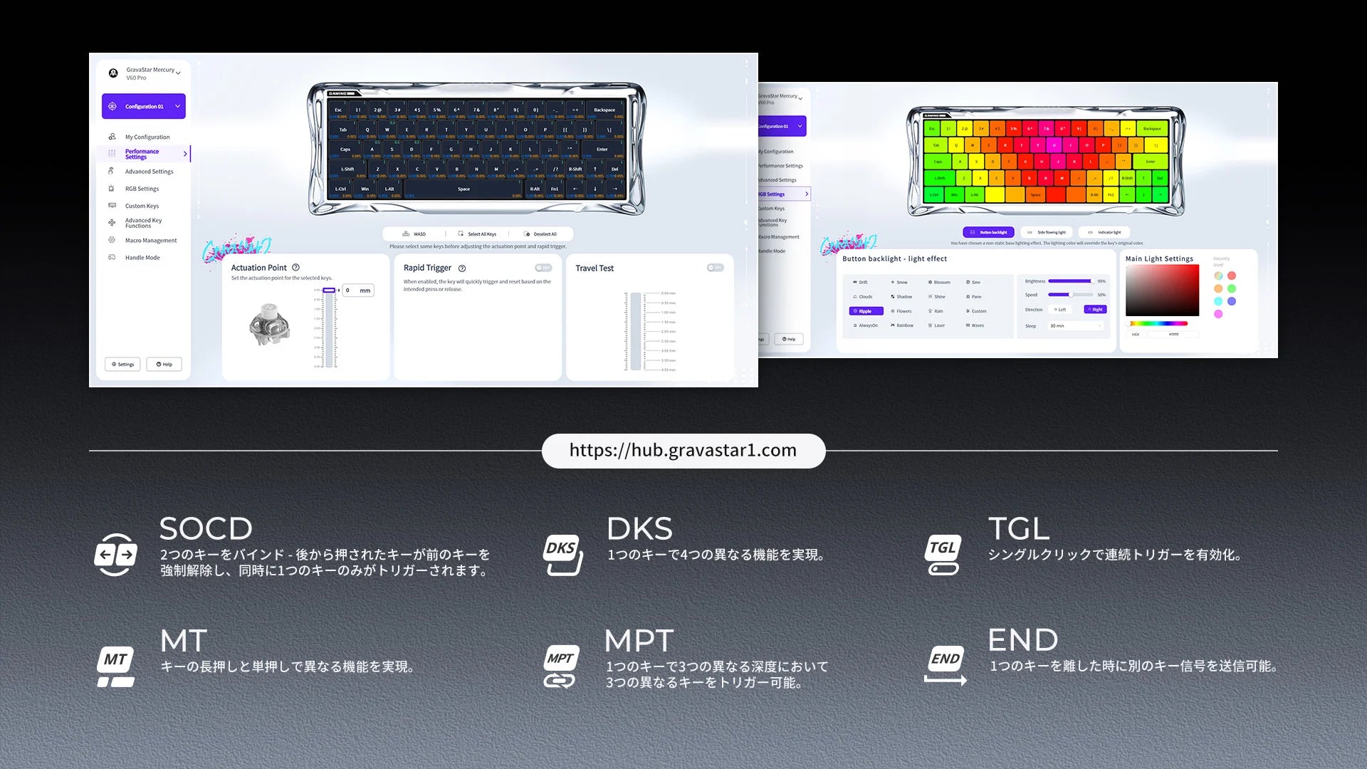 ダイナミックラピッド トリガー:キーの移動に基づいて (事前設定された制限ではなく) アクティブ化/非アクティブ化ポイントを動的に調整し、滑らかなラピッド キー リピートを可能にします。最後