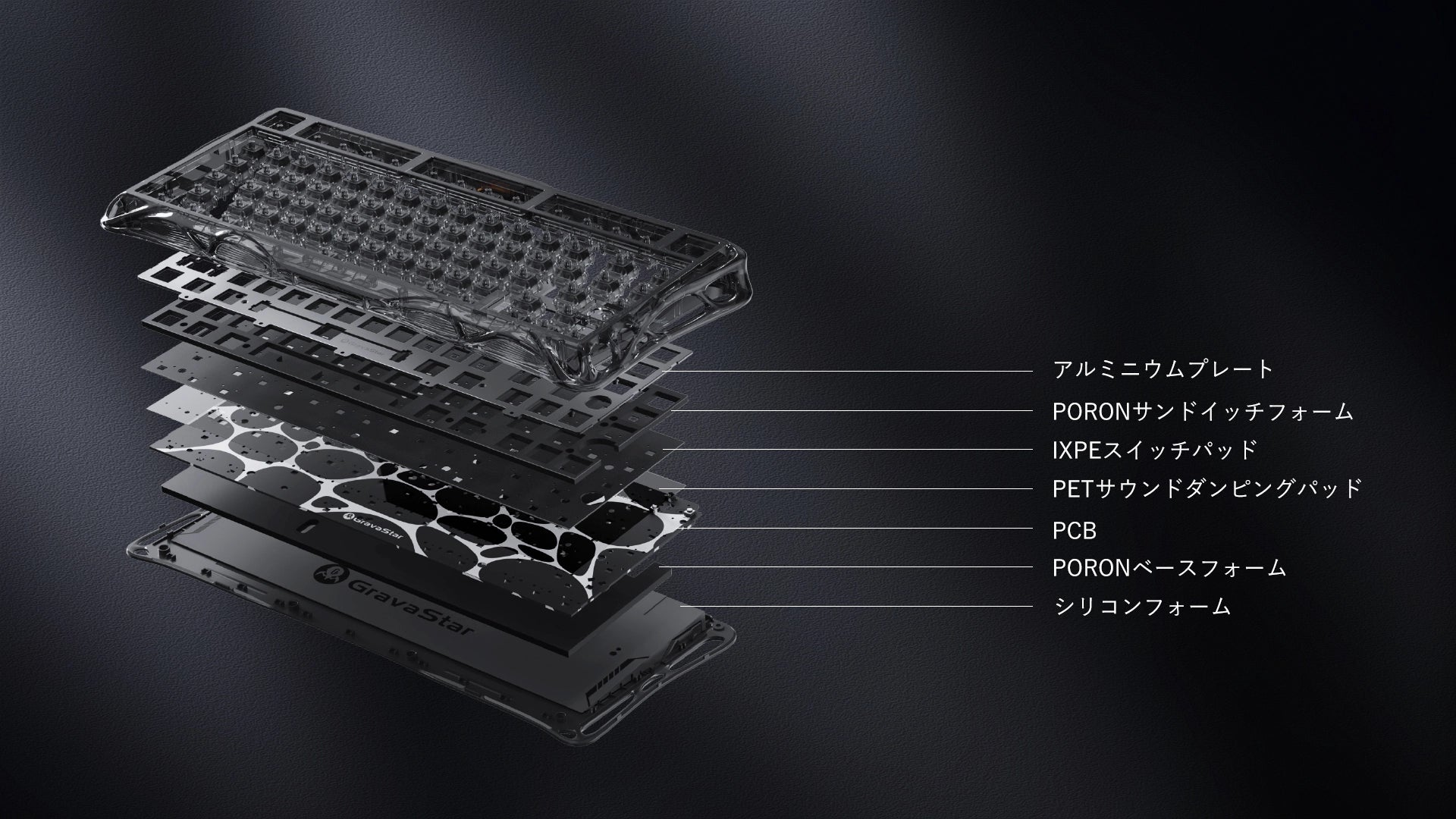 - 5層構造のアコースティックフォーム:打鍵時の振動を最小限に抑え、よりクリアな打鍵音とスムーズなタイピング感を提供。