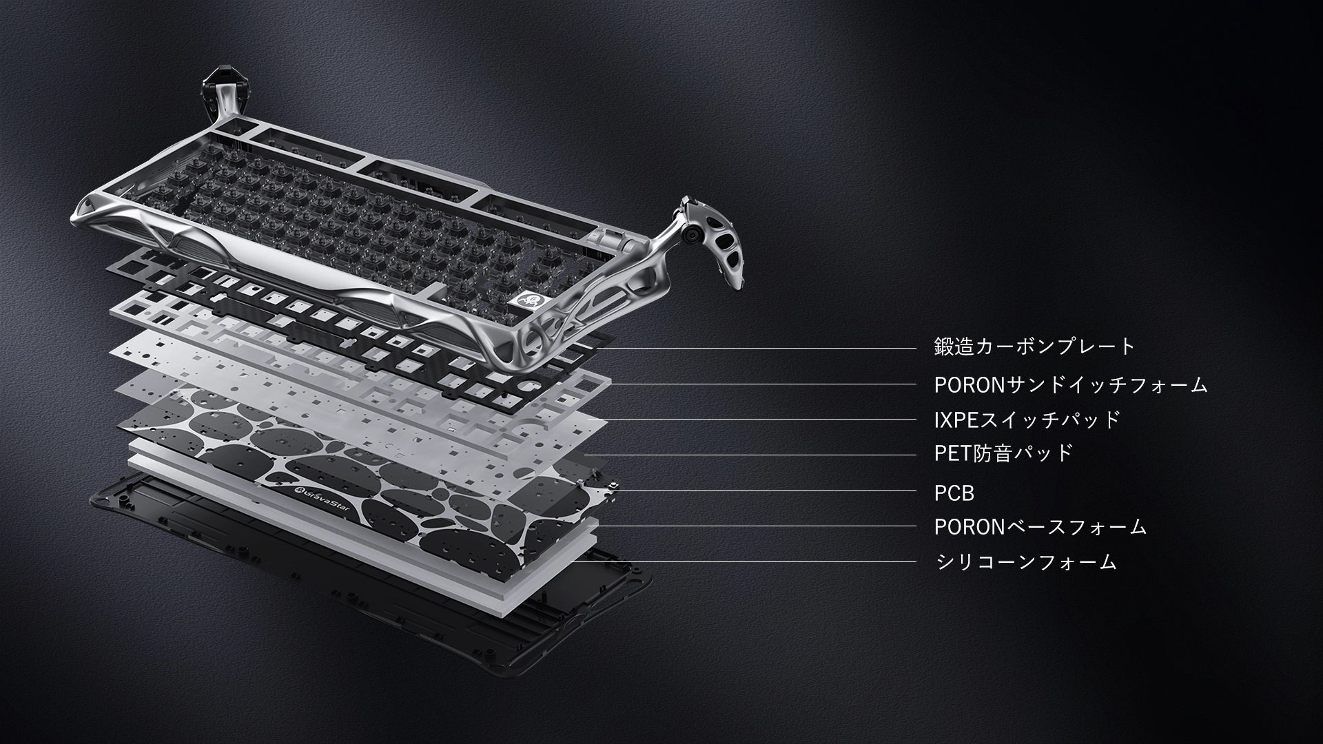 - 5層構造アコースティックフォーム:打鍵時の振動を最小限に抑え、よりクリアな音と滑らかなタイピング感を実現。